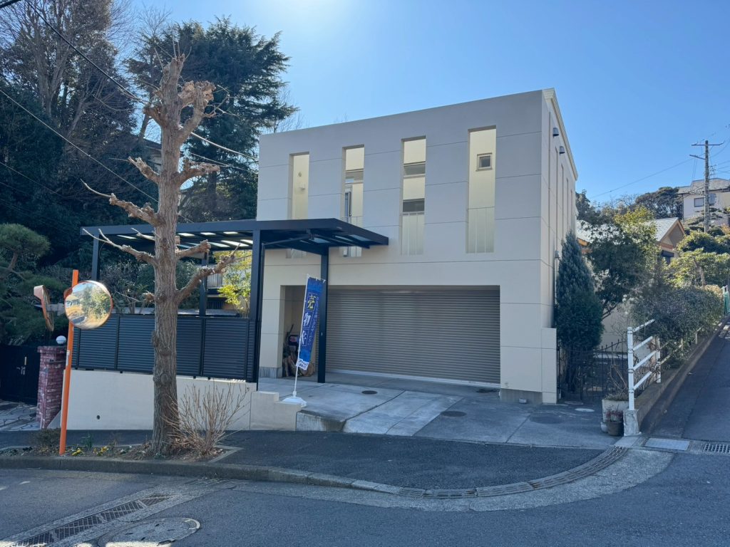 今回ご紹介致しますのは、鎌倉・笛田の高台に佇む、敷地約90坪、シャッター付ガレージのあるRCデザイナーズ邸宅一棟。