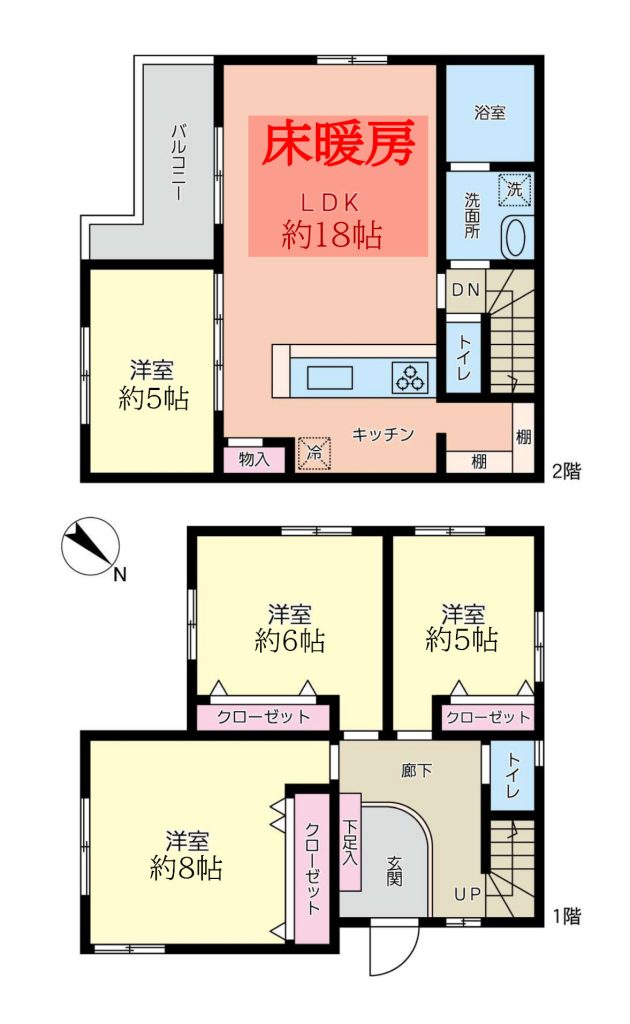 建物面積:1階48.60㎡ 2階48.60㎡ 合計97.20㎡